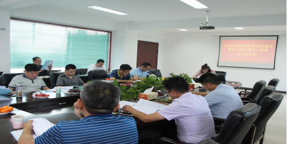 2019年8月8日下午,宝应县水利局潘永华副局长在江苏天宇集团八楼会议室主持召开了里运河宝应城区饮用水源地取水口迁址工程二标段完工验收大会,本项目由我公司江苏天宇建设集团有限公司施工。国土局、财政局、审计局相关领导出席了本次会议,参加本次会议还有建设单位、设计单位、施工单位、监理单位以及检测单位的相关负责人。